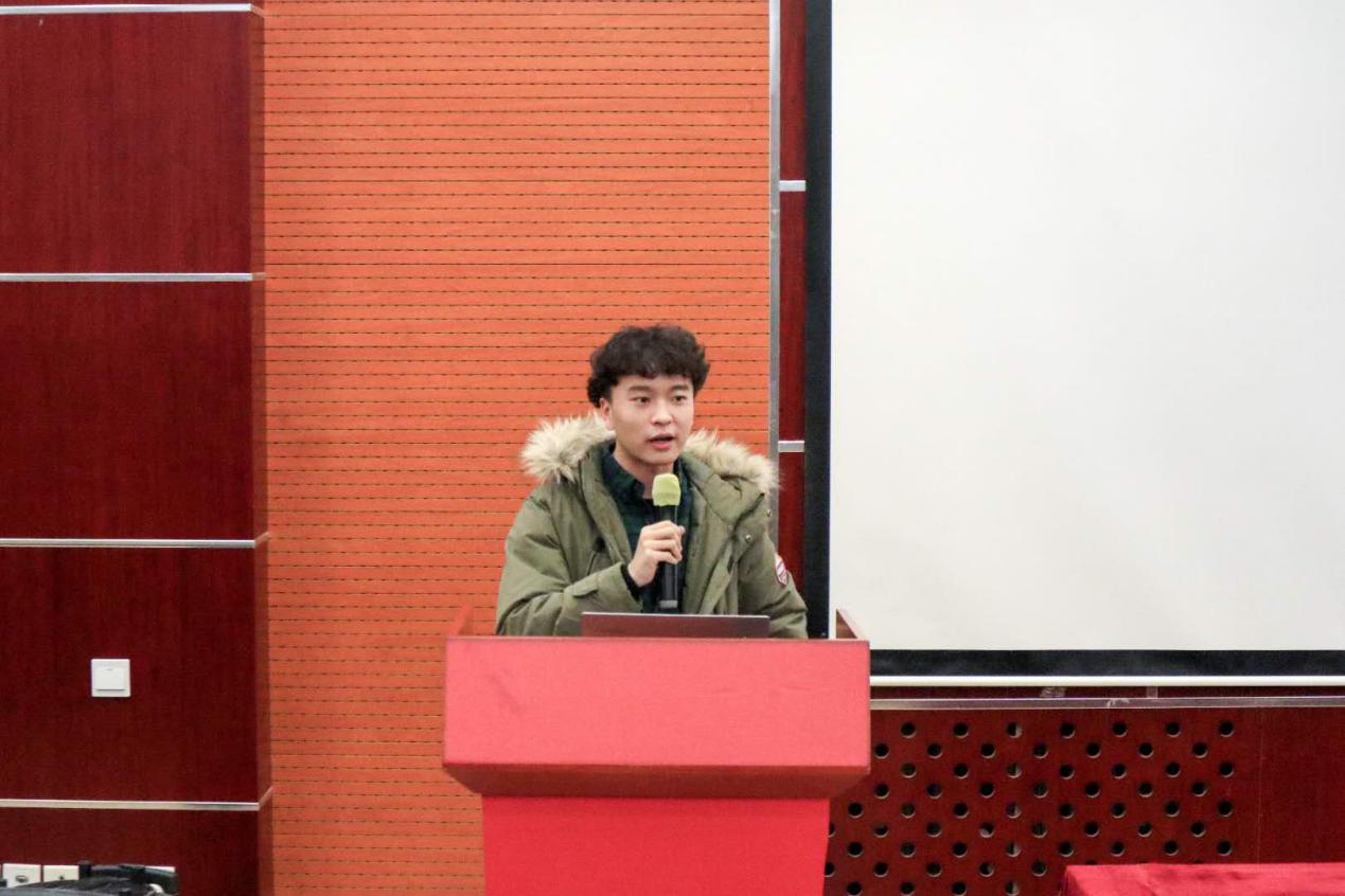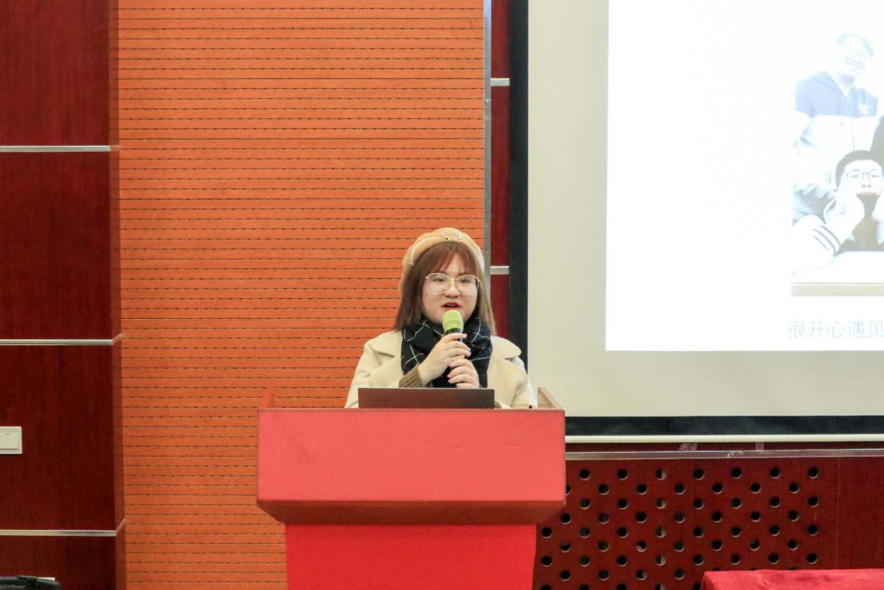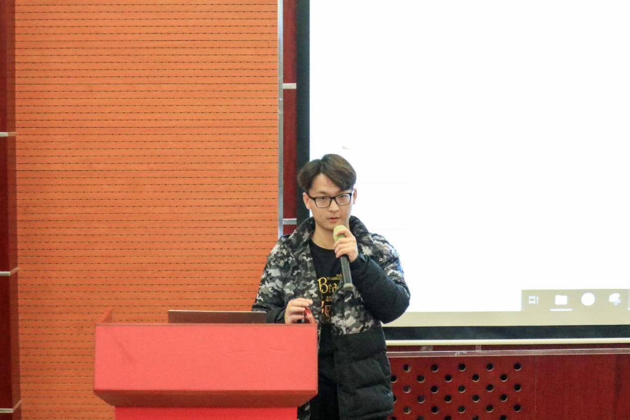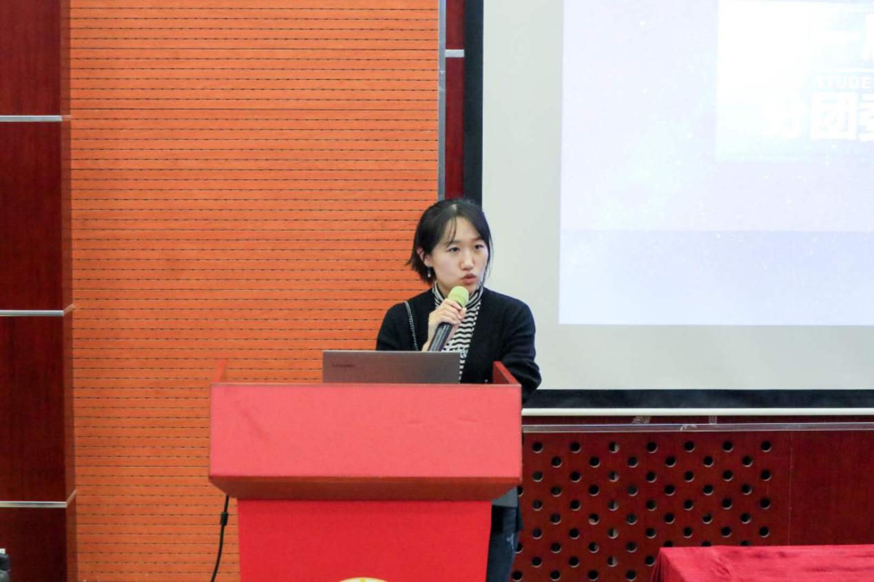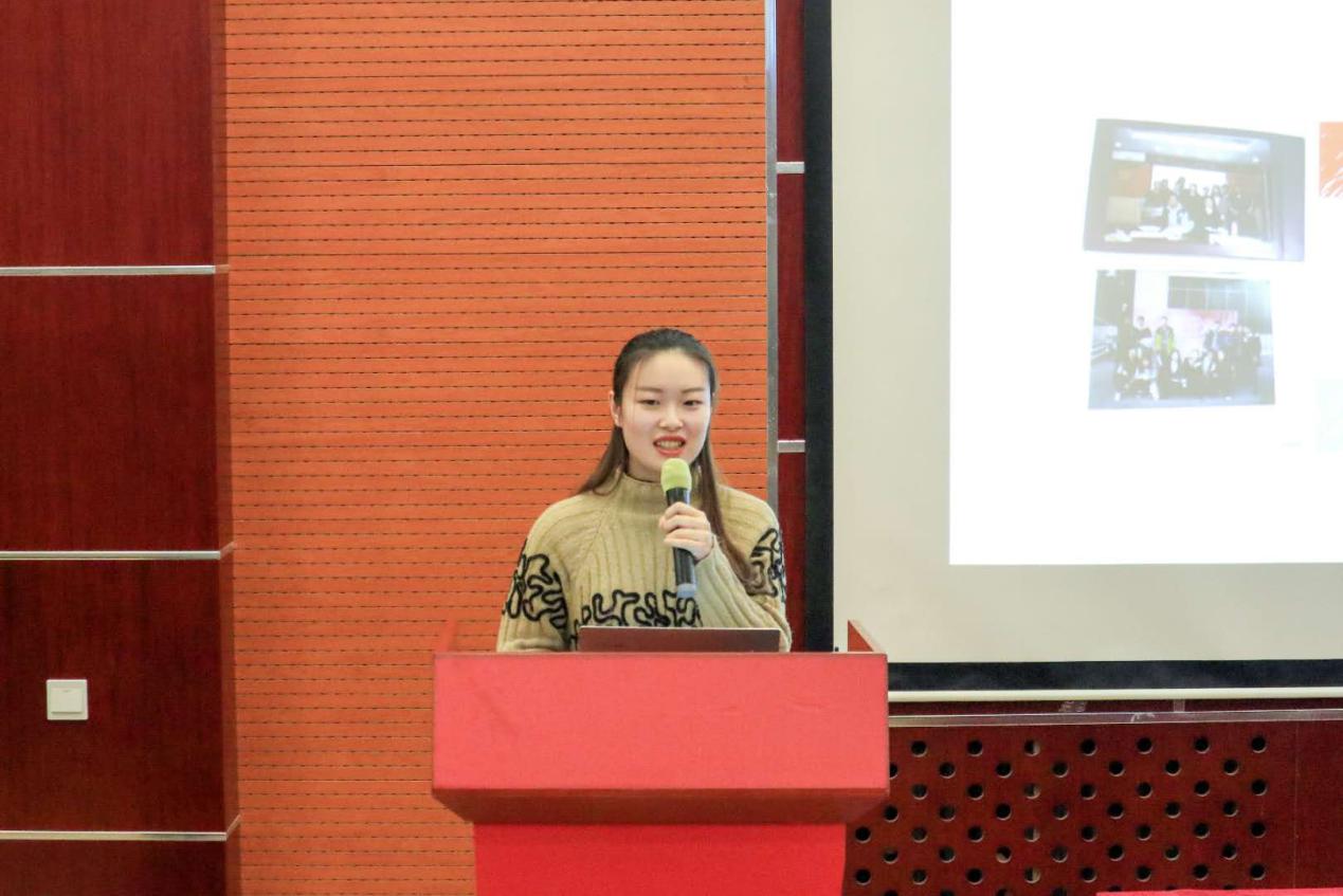 紧接着是学生活动部部长吴馥梅发言。她对部门成员与活动进行了简单的介绍,从她的介绍中可以看出学生活动部是一个十分温馨的大家庭。最后她对2019年将要组织的大合唱比赛和毕业晚会满怀憧憬,并表示了对高质量完成工作任务的信心。