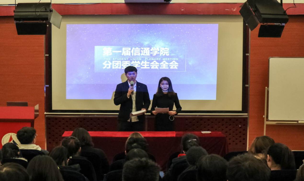经过了一个学期的努力奋斗,信通学院第一届分团委学生会的第一阶段任务顺利完成。12月15日晚6点,信通学院分团委学生会于46号楼会议厅召开了2018年的年终全会。大会邀请了分团委学生会指导老师梁晶晶老师,分团委副书记陈舒恬以及学生会的主席团成员,在来自秘书部的主持人肖龙洋和学生活动部的郅爱的主持下拉开帷幕。