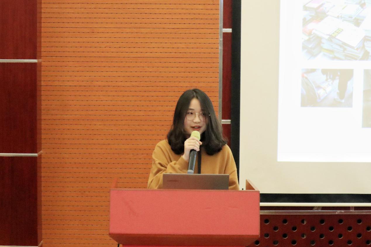 接下来是组织部部长葛佳妮上台发言,她对部门的团务整理工作,“好书伴成长”活动以及志愿北京注册活动进行了总结。同时,她还曾带领部门成员参加校级知识竞赛,展现了组织部的积极作风。