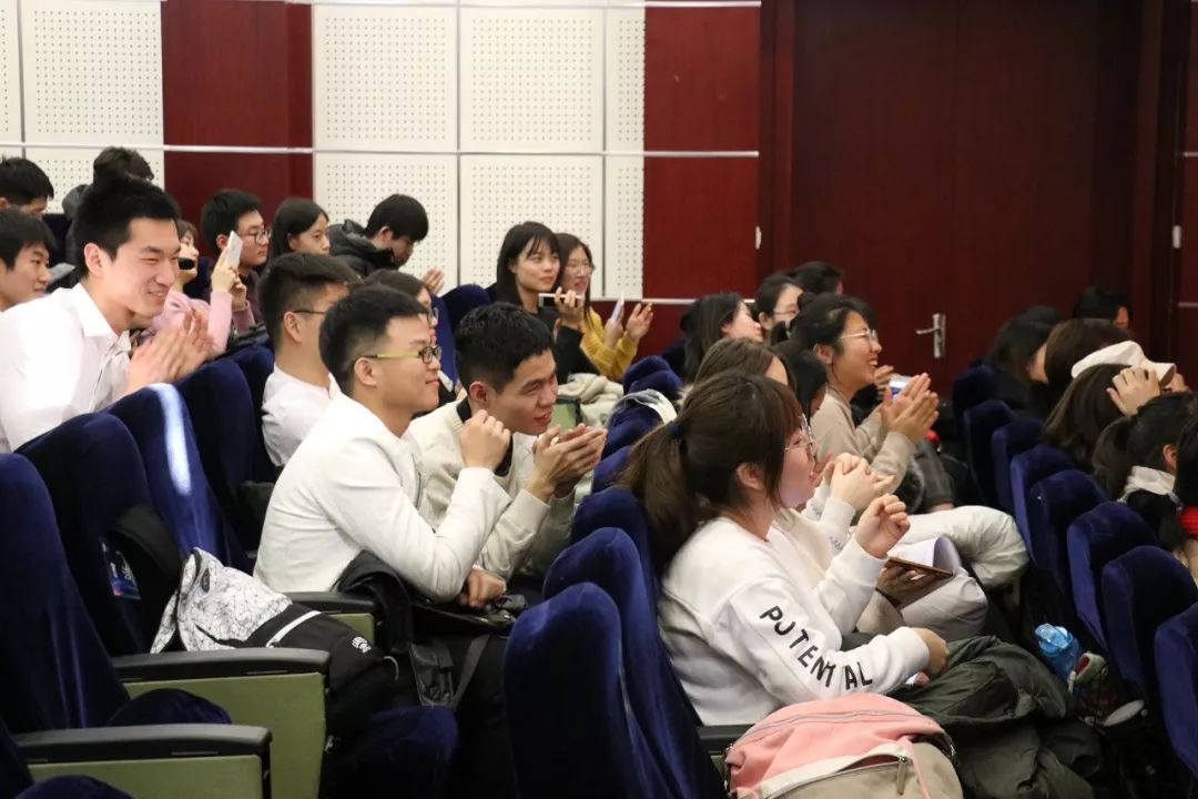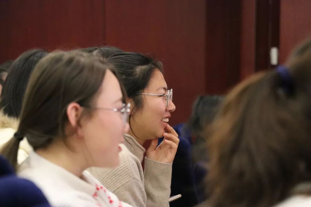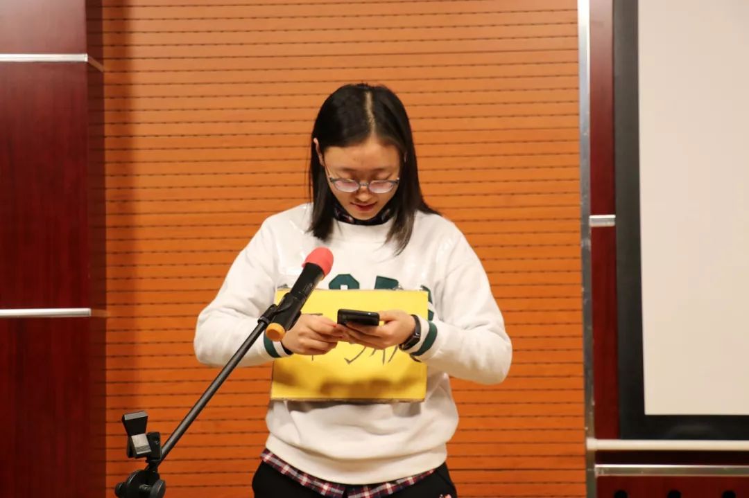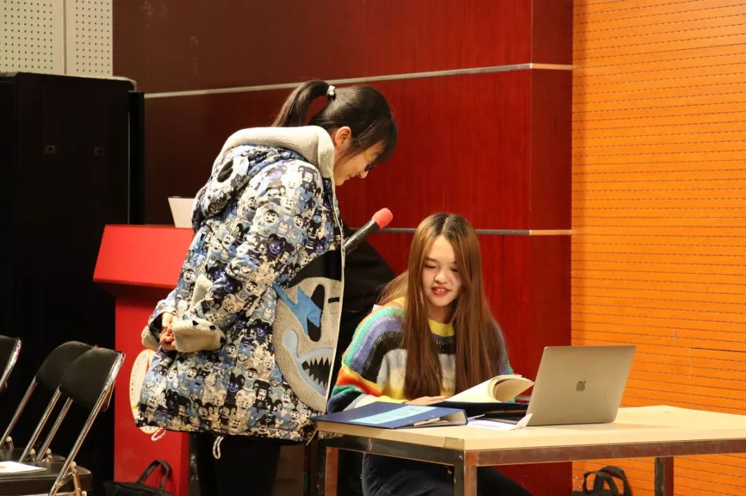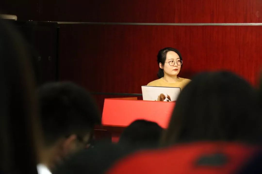 现场观众认真观看演出兼职辅导员宋靳锞师姐总结发言,对大家的表现提出肯定。