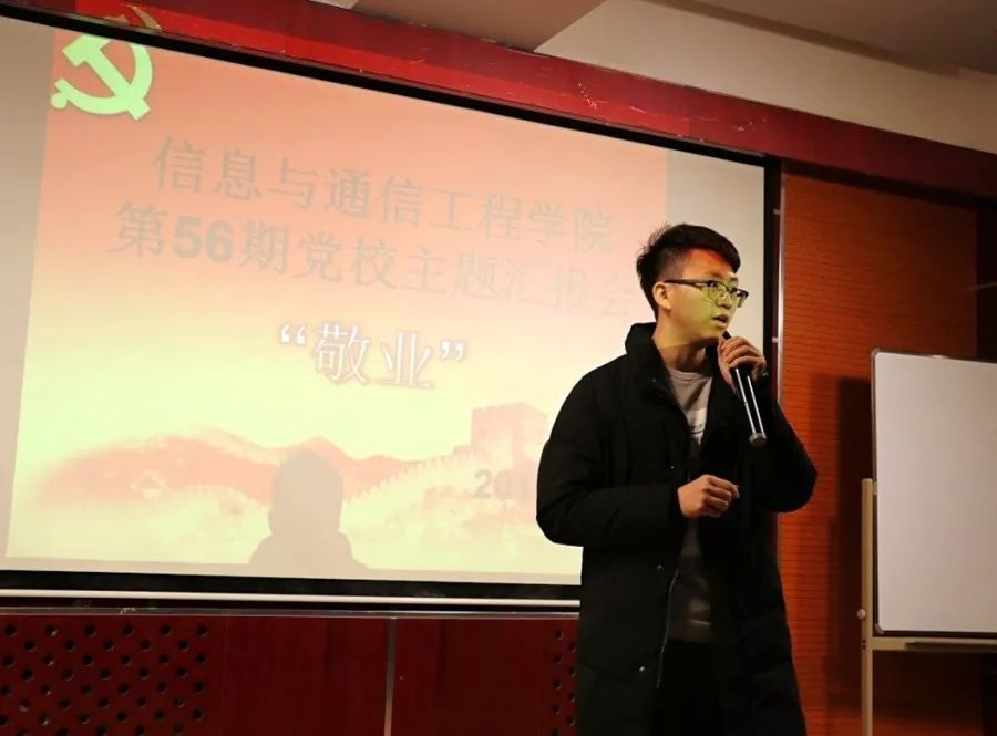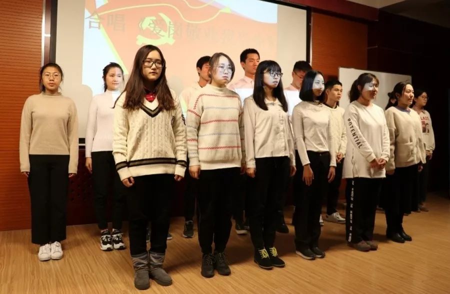 通信工程党课小组的开场合唱表演振奋人心,嘹亮的歌声唱出了“敬业”。