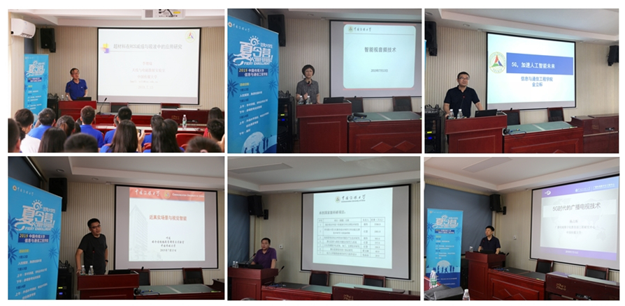 本次夏令营活动由学术讲座、实验室参观和专业考核三部分组成。在7月13日上午的学术讲座环节中,金立标教授、李增瑞教授、史萍教授、任慧教授、杨占昕教授以及叶龙副研究员依次就5G与人工智能、超材料在RCS减缩与吸波中的应用研究、智能视音频技术、视听技术与智能信息控制技术、5G时代的广播电视技术、近真实场景构建与视觉智能识别等领域发展现状以及相关科研团队概况进行了介绍。