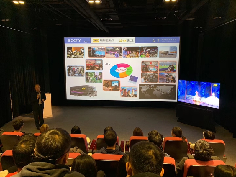 11月1日,迟老师带领我校学生前往索尼技术学院参观学习。索尼集团是影视传媒专业技术世界领先企业,和我校及中国各大影视传媒机构有着长达40年的合作关系。索尼研发的4K/8K超高清晰度影视制作系统、专业光盘网络、媒体资产管理系统、专业显示设备直至视频通讯、网络监控和数字投影等被广泛应用于影视、新闻节目制作、网络通信、医疗和教育等各行各业。在参观索尼技术学院的过程中,学生们了解到索尼发展的历史并观摩了索尼4K技术的成果展示,参观学习过程理论和实践相结合,充分诠释了迟老师“知行合一”的授课观念,也令学生们印象深刻。11月6日,迟老师从奥运会的网络节目制作系统谈起,分析了影视传播制作系统向数字化、超高清化、网络化发展过程的成功及失败案例,从中找出重大变革期时的机遇。主讲人以近四十年的亲身经历,带领学生深入浅出讨论影视传播技术的发展过程。课程设计以时间轴为主线,将各时期代表性的技术、产品及应用结合其开发过程,加上当时的人物介绍、历史背景、广告策划、经营决策、用户需求、市场反响等辅助元素,将关键技术和应用自然融入到主线中,避免枯燥的纯技术说明。为了激发学生的主动学习的能力,鼓励学生独立思考和积极参与,迟泽淮老师拿出自己的成功及失败案例交给学生讨论,让学生身临其境,举一反三。11月8日在最后一次课上,老师带领各专业研究生共同探究4K/8K/VR影视技术的应用及发展同学们分小组对本次课程学习内容的归纳总结展示,并对参加工作坊的理解感悟进行了交流。经过课程的学习,学生们对影视传播技术的发展过程与未来的发展方向都有了更深入的认识。