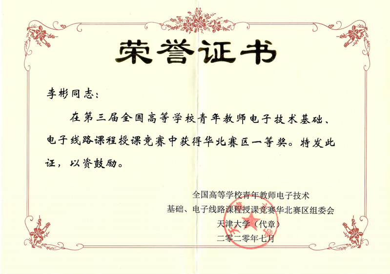 近日,由中北大学承办的第三届全国高等学校青年教师电子技术基础、电子线路课程(华北赛区)授课竞赛举行。本次竞赛采取线上授课方式,来自北京航空航天大学、天津大学等15所院校的26名教师参加了比赛,来自清华大学、北京大学、天津大学、北京航空航天大学、北京理工大学、北京交通大学等的十余名评审专家进行了网上评审。我校bw西汉姆联教师李彬获得一等奖。