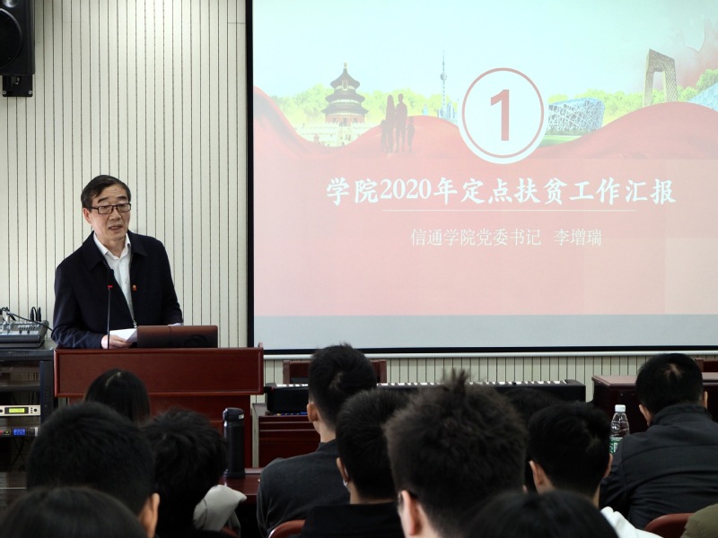 随后,信通学院党委书记李增瑞对信通学院党委2020年定点扶贫工作进行汇报。