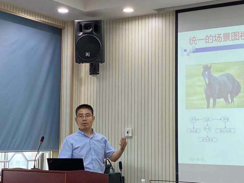 此次前沿课的主题为“视觉场景图—表示、生成与应用”。王瑞平研究员围绕场景图的表示、生成与应用,介绍了结构化图推理驱动的物体检测、场景关系图的自动生成、复杂场景跨模态图文检索、图像描述生成的认知评测体系等工作,并分享了团队的相关科研进展与成果。通过这次讲座,在场师生对计算机视觉与模式识别领域的有关理论与技术有了更为深刻的理解和认识。