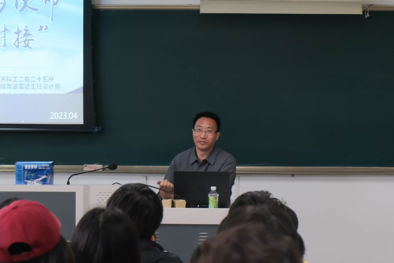 蒋清富以“奋斗的青春最美丽”为主题与同学们进行分享。首先,从“我是谁”出发,向大家介绍了自己工作上的经历与成果。当我国成为第三个独立自主掌握交会对接技术的国家时,那些“不顾万里路遥,只管披星戴月”的青春岁月显得特别“美丽”,回想多年的艰苦奋斗,无怨无悔。无论是身患脂肪瘤却仍先坚持完成项目,被称赞为“掉肉不掉队”的先锋,还是“全副武装”上高空,通宵达旦整理实验数据,亦或是一头扎进微波雷达产品研发,立誓“项目不成功就不结婚”,蒋清富始终践行着“特别能吃苦、特别能战斗、特别能攻关、特别能奉献”的航天精神,他表示,热爱航天事业、发扬航天精神、成为“航天员最信赖的人”是他人生价值最大的体现。蒋清富跟同学们分享了他“1+4+1”的学习与工作经验:应秉持着把每项工作都当做事业来做的工作态度,不断提升自己的理解力、执行力、分析总结力与学习力,形成并坚持严、慎、细、实的工作作风。他鼓励同学们将这些态度,能力和作风在现在学习和将来的工作中落到实处,能成长为栋梁之才。