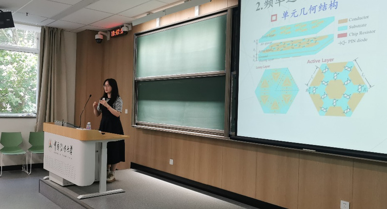 上午,我校2023级博士生李立北京理工大学2022级博士生聂博宇和我校2022级博士生陈潜分别作了题为《基于无穷小电磁偶极子阵列的天线辐射场计算》《基于金属媒质的毫米波及太赫兹多波束天线》《新型频率选择吸波体设计及在天线RCS减缩中的应用》的报告;我校2021级博士生徐程祥和王檬分别作了题为《四极化可重构超表面设计》和《三极化大规模MIMO信道特性测量、分析与建模》的报告;我校2020级博士李盼作了题为《基于辐射和散射性能一体化的智能超表面技术研究》的报告。各位博士生的报告主题鲜明、内容精彩,参会的专家学者对他们的报告从创新性、逻辑性严谨性等多个角度进行了细致的点评和分析,并与同学们展开了热烈的交流和探讨,针对一些关键问题和难点,提出详细建议与指导