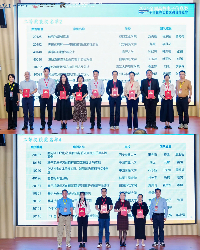 此前,bw西汉姆联共13位老师在2024年全国高校电子信息类专业实验案例竞赛华北赛区比赛中获奖,其中一等奖获奖教师为田佳音,周德扬,刘舫,李婕妤;二等奖获奖教师为杨宇,石东新,李姗姗;三等奖获奖教师为王鸿涛,孙象然,武岳巍,陈群,王彩虹,易芃。获奖教师代表学院参加了全国决赛并斩获7个奖项。