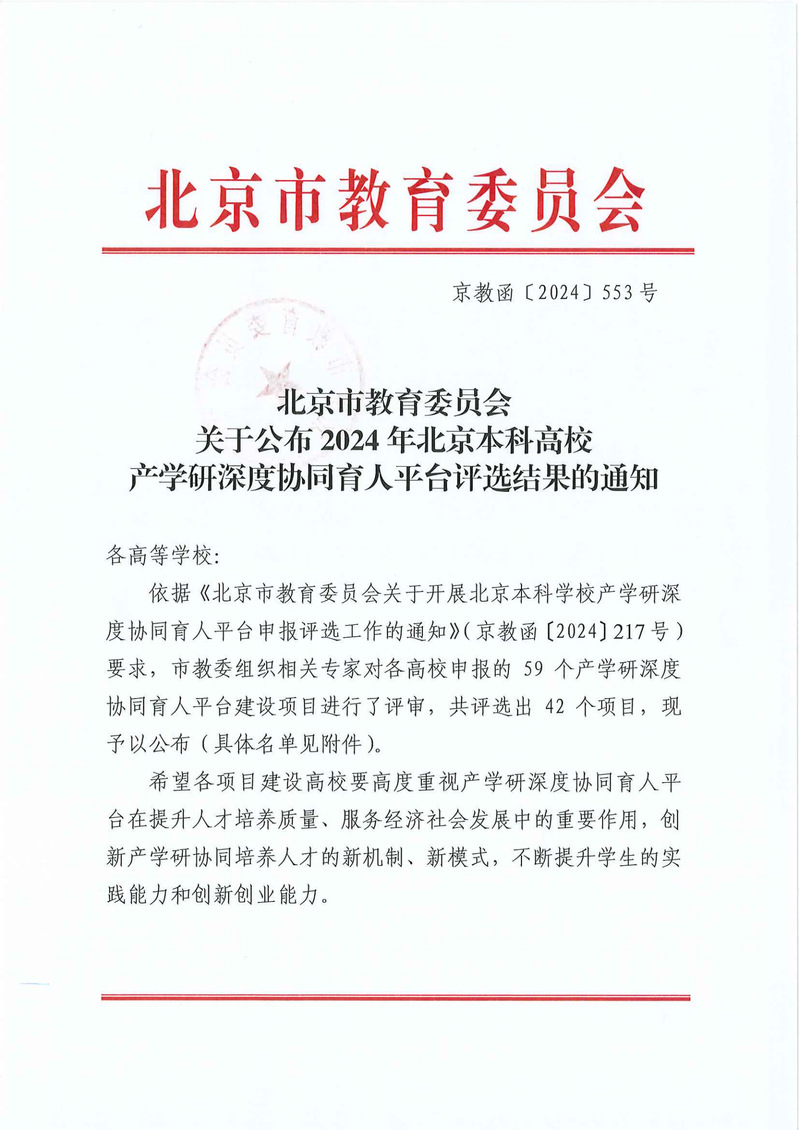 2024年11月6日,北京市教育委员会公布了2024年北京本科高校产学研深度协同育人平台评选结果,市教委组织相关专家对各高校申报的59个产学研深度协同育人平台建设项目进行了评审,共评选出42个项目,bw西汉姆联“面向未来演出新形态的智能装备与系统专业产学研深度协同育人平台”成功入选。