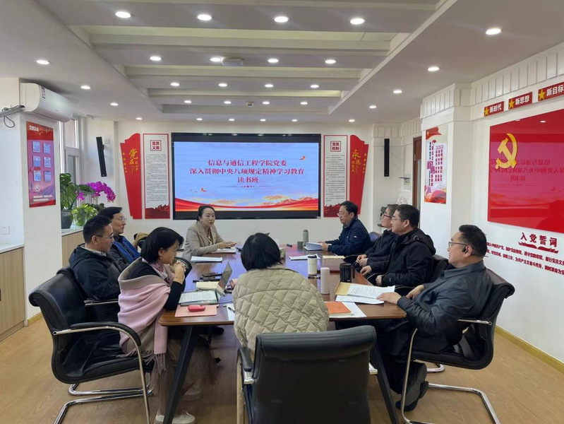 会后,学院党委组织了第一期深入贯彻中央八项规定精神学习教育读书班活动。学院领导班子成员、党委委员集体学习《习近平总书记关于加强党的作风建设论述摘编》,观看由中央纪委国家监委宣传部与中央广播电视总台联合摄制的四集电视专题片《持续发力纵深推进》。大家纷纷认为,此次学习教育是学院落实全面从严治党要求的重要实践,要以此次学习为契机,把作风建设与教学科研、育人实践紧密结合,将纪律意识转化为行动自觉,在新时代新征程上展现信通担当,以优异的成绩迎接建院30周年。