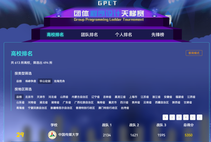 “中国高校计算机大赛——团体程序设计天梯赛”是国内计算机领域的权威赛事,自2019年起连续入围中国高等教育学会“全国普通高校大学生竞赛排行榜”竞赛项目榜单。大赛以培养高校学生的计算思维、程序设计能力与团队协作精神为宗旨,致力于全面提升我国高校计算机人才培养水平。经过多年发展,该赛事影响力持续扩大,已成为全国高校计算机专业师生高度关注的品牌赛事。2025年大赛延续“个人独立竞技、团体计分”的赛制,吸引了来自全国613所高校的1972支队伍参赛。