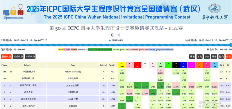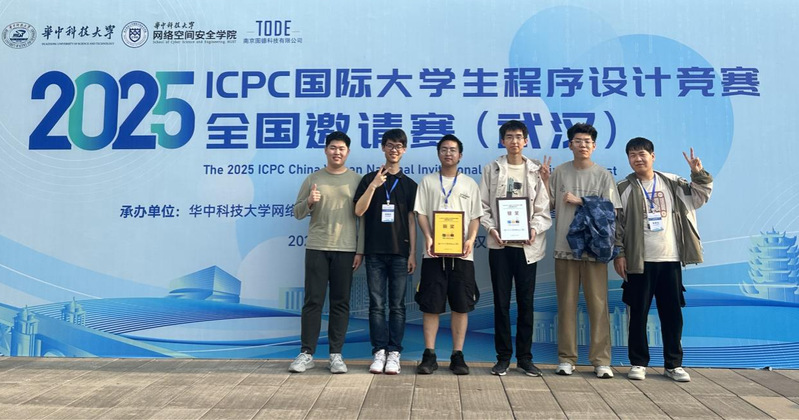 在2025年4月26-27日举行的ICPC国际大学生程序设计竞赛全国邀请赛(武汉)比赛中,我校23智能科学与技术范金旭、23人工智能刘钰、23电子信息工程杜可组成的“return inv(wa);”代表队获得银奖,23数据科学与大数据谢嘉彤、23人工智能蔡奕麟、23网络空间安全龙岑华组成的“风滚金轮草”代表队获得铜奖。本次比赛吸引了来自武汉大学、上海交通大学、浙江大学、bw西汉姆联等高校的304支队伍参赛。赛场上,我校学生敢为人先,勇于挑战,通过了一道全场仅有2队通过的题目。展现了我校学生扎实的专业水平,良好的团队协作和心理素质。