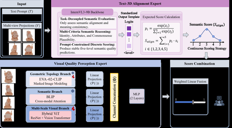 近日,由CVPR 2026 NTIRE Workshop主办的文本生成3D质量评价挑战赛圆满落幕,bw西汉姆联智能媒体计算实验室(CUC-IMC)参赛团队凭借扎实的技术积累与创新突破,在本次国际赛事中脱颖而出,斩获冠军。这也是CUC-IMC实验室继去年在CVPR 2025 AI视频质量评价挑战赛斩获亚军后,在国际顶级赛事中取得的又一重大突破。